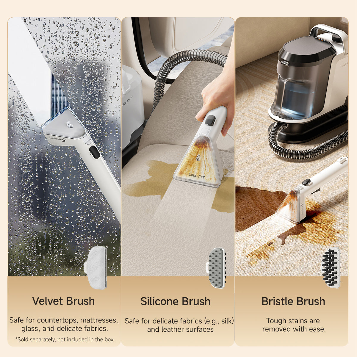 מנקה הכתמים UWANT Y100 Steam מתאים לכל סוגי הטקסטיל, ספות, מזרונים, שטיחים ואפילו מגבות ובגדים. מתאים לצמר, משי, כותנה, יוטה, ניילון ופוליאסטר.